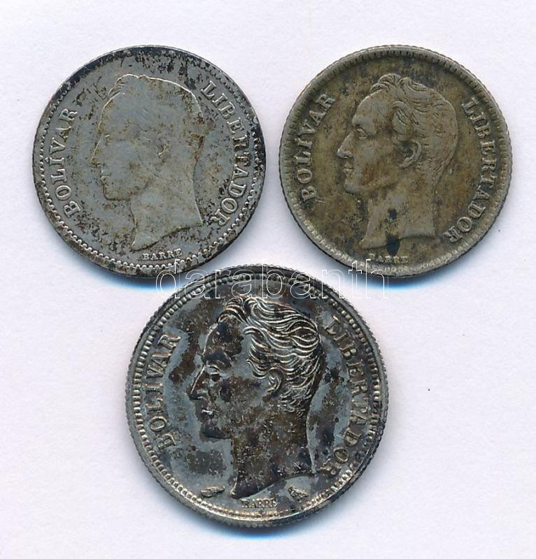 Venezuela 1924. 25 Centimos Ag + 1954. 25 Centimos Ag + 1960. 50 Centimos Ag C:VF,F patina