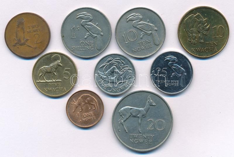 Zambia 1964. 1 Shilling Cu-Ni + 1968-1992. 1 Ngwee - 10 Kwacha (8xdiff) C:XF-F