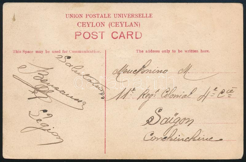 1906 Ceylon utcajelenet villamossal képeslap Tonkin-ban (Kína) feladva "SAIGON" érkezési bélyegzéssel