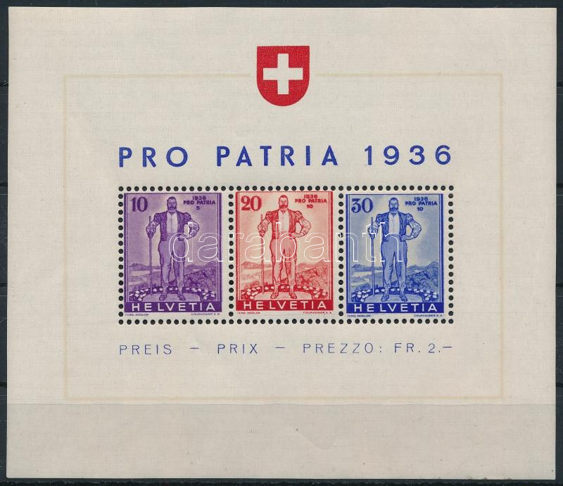 1936 Pro Patria blokk Mi 2 (Mi EUR 75.-) (pici ránc / light crease)