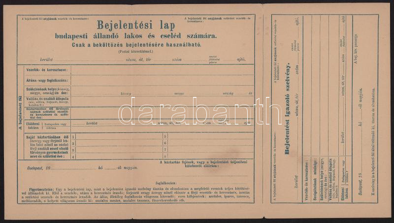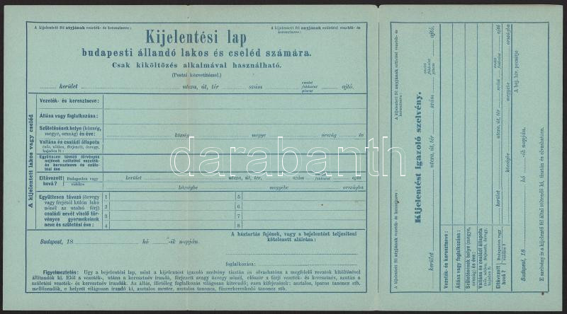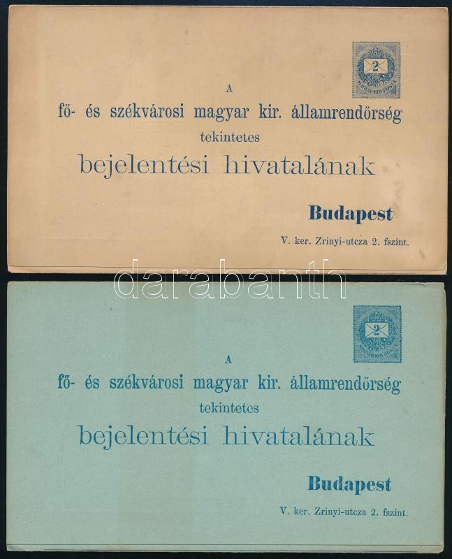 1897 1-1 db használatlan rendőrségi be- és kijelentőlap (Hodobay 7.000)