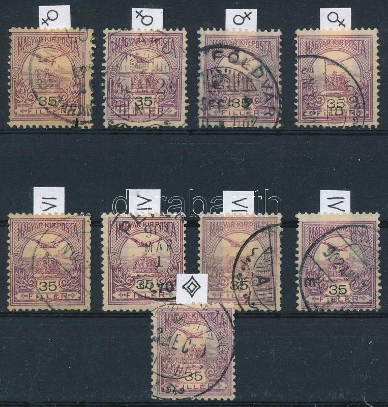 1900 9 db Turul 35f E fogazással, számvízjellel és csillagidom állással