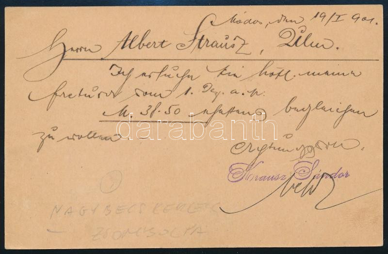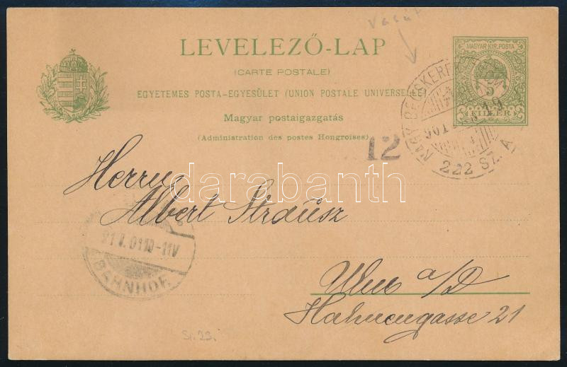 1901 Levelezőlap vasúti mozgóposta bélyegzéssel