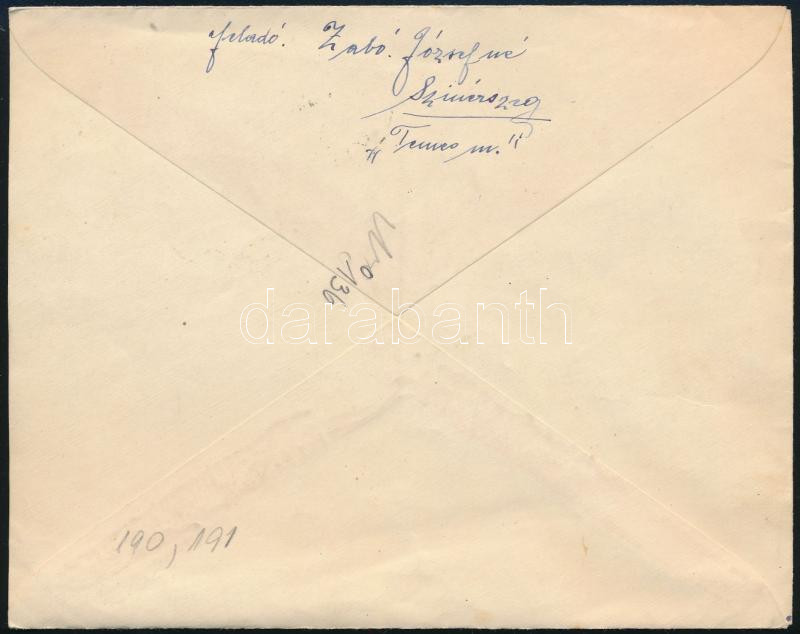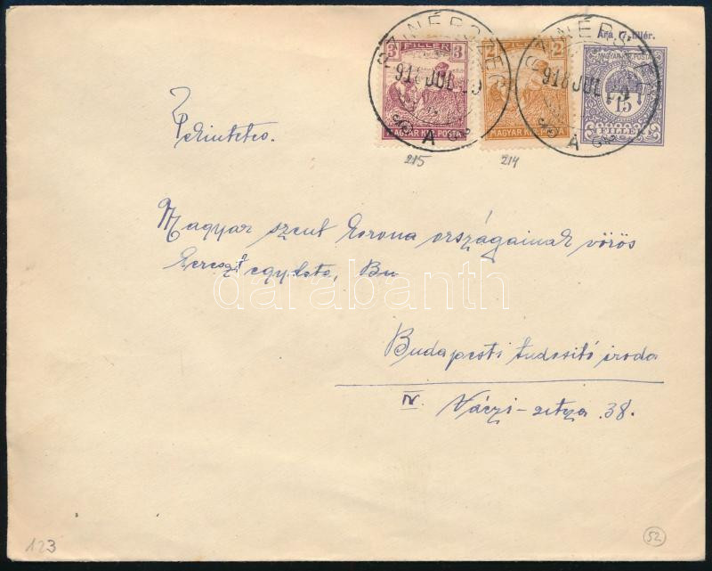 1918 Díjjegyes boríték dekoratív 2 bélyeges kiegészítéssel "SZINÉRSZEG"