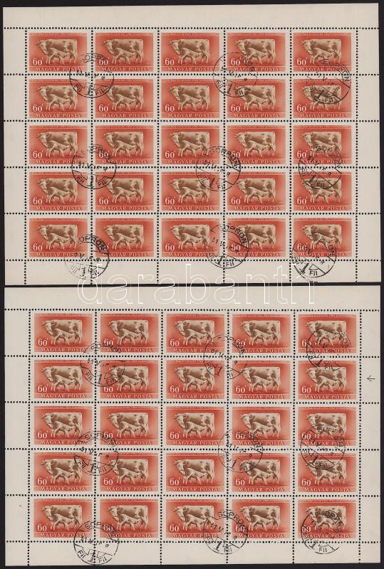 1951 Háziállatok 60f 11 db 25-ös ív, közte 1 db számvízjellel
