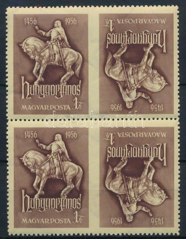 1956 Hunyadi János négyestömb, benne két középen fogazatlan fordított pár