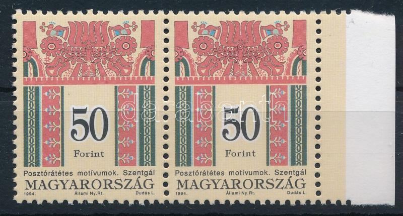 1994 Magyar népművészet 50Ft ívszéli pár, matt-fényes, sihl papír