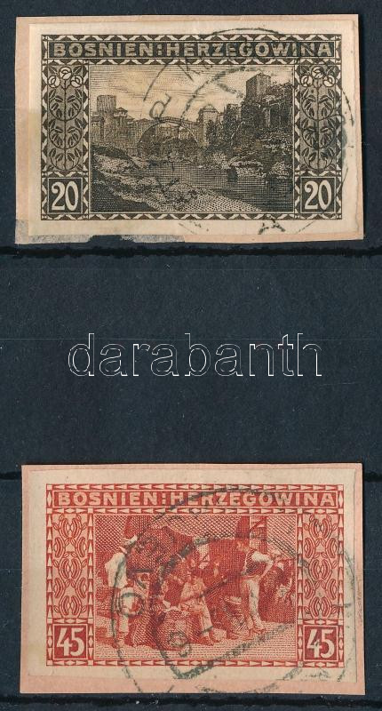 1906 20h és 45h vágott bélyegek kivágásokon