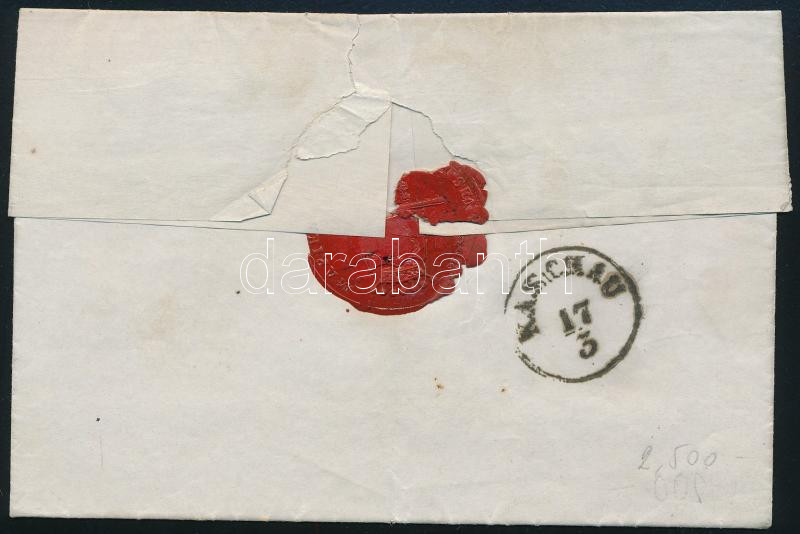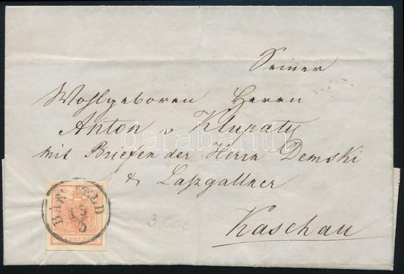 1857 3kr MP I típus levélen, "BARTFELD" - "KASCHAU"