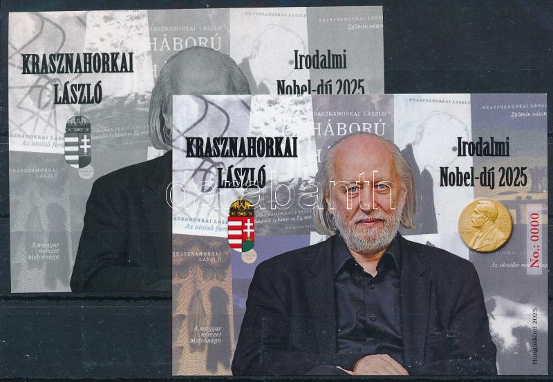 2025 Krasznahorkai László Irodalmi Nobel-díj emlékív pár, 0000 piros-zöld sorszámmal, feketenyomat