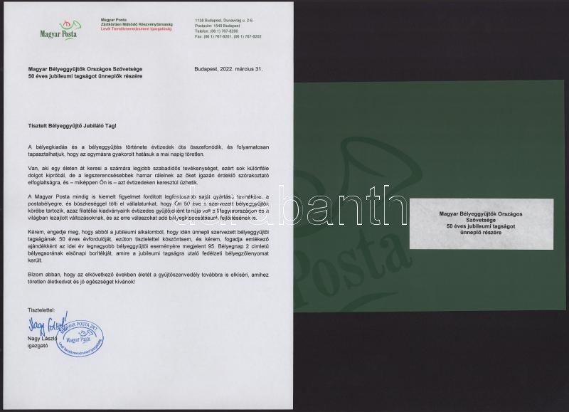 2022 Bélyegnap (95.) - 100 éve született Vertel József sor FDC-n alkalmi bélyegzéssel, a Magyar Posta Zrt. köszöntő levelével