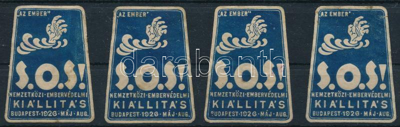 1926 "Az Ember" S.O.S! Nemzetközi Embervédelmi Kiállítás 4 db levélzáró