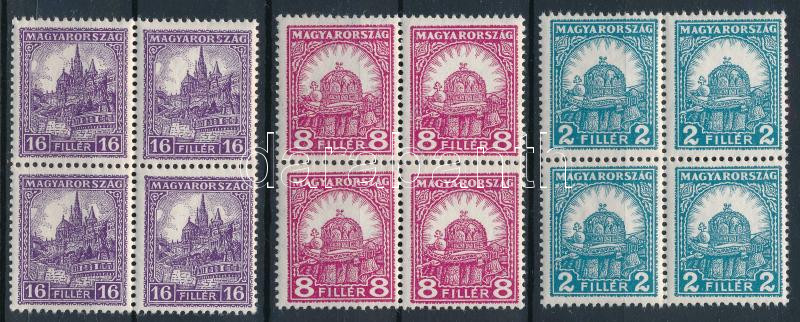 1928 Pengő-fillér (II.) 2f, 8f, 16f B fogazással 4-es tömbökben (25.200)