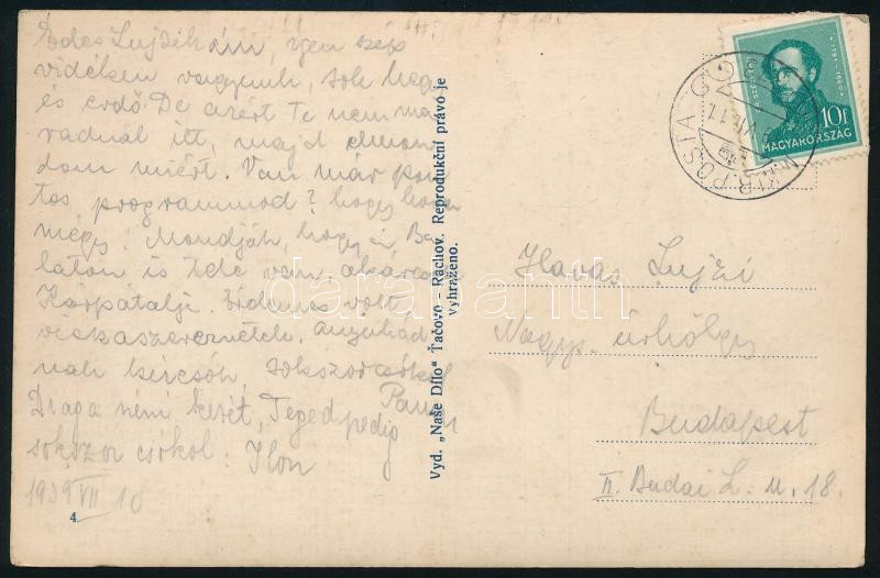 1939.VII.11. Képeslap Arcképek 10f bérmentesítéssel "M.KIR.POSTA / 373" acélbélyegzéssel