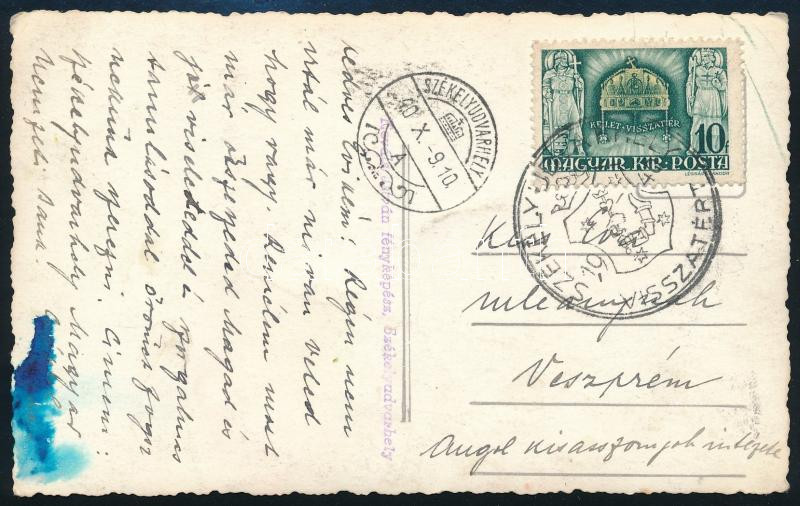 1940 Képeslap "SZÉKELYUDVARHELY VISSZATÉRT" bélyegzéssel