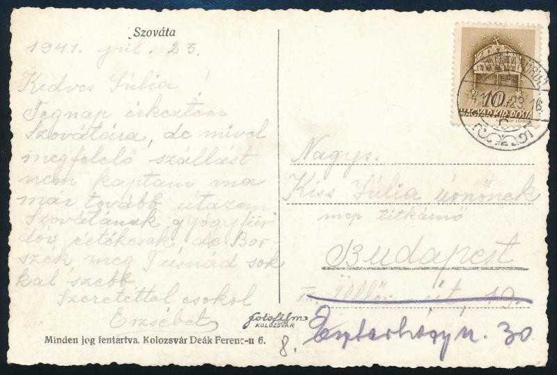 1941 Képeslap "SZOVÁTAFÜRDŐ" bélyegzéssel