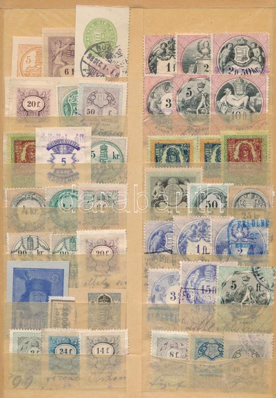 ca 1880-1920 Magyar illetékbélyeg gyűjtemény berakólapon több nagy címlettel