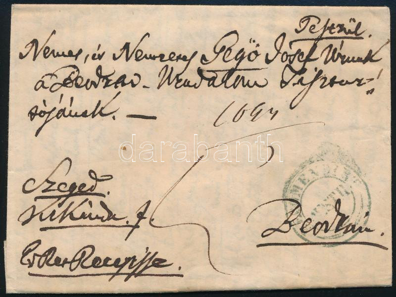 1845 Portós levél kék / blue "RECOMENDIRT / PESTH"