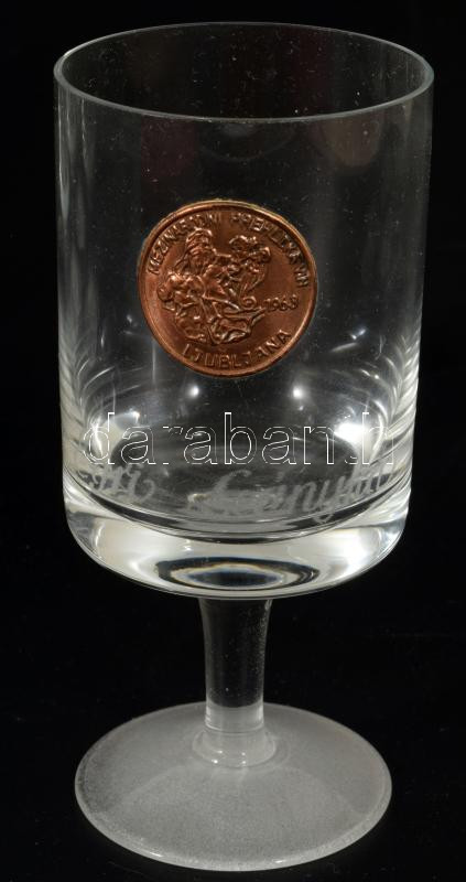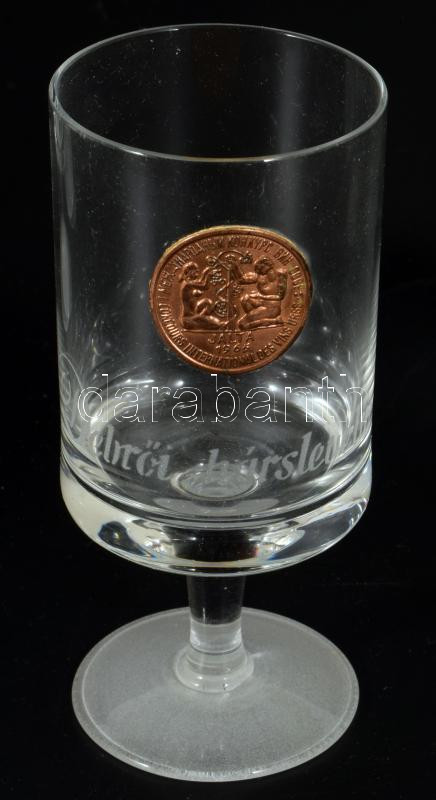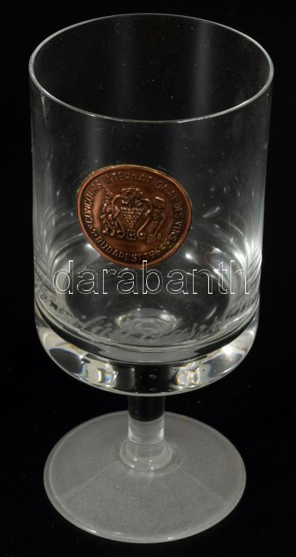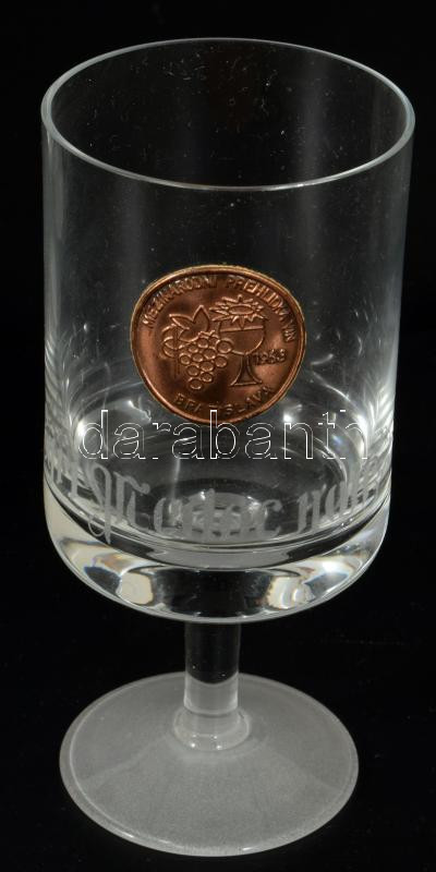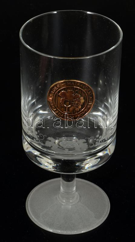 6 darabos pohár szett, rajtuk egri borok felirataival, m: 13 cm, díszdobozban.