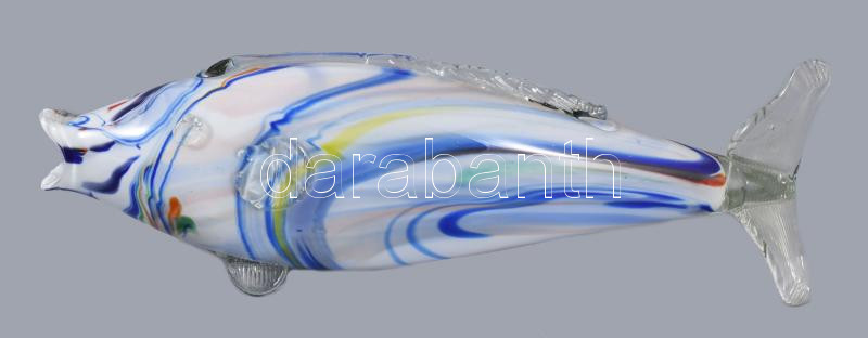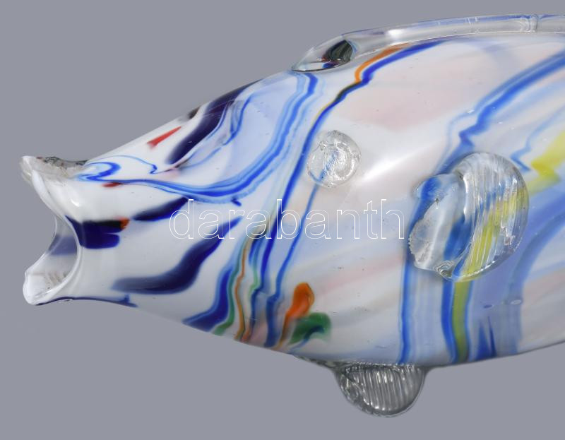 Anyagában színezett kézzel készült üveghal, hibátlan, h: 34 cm