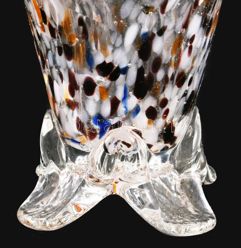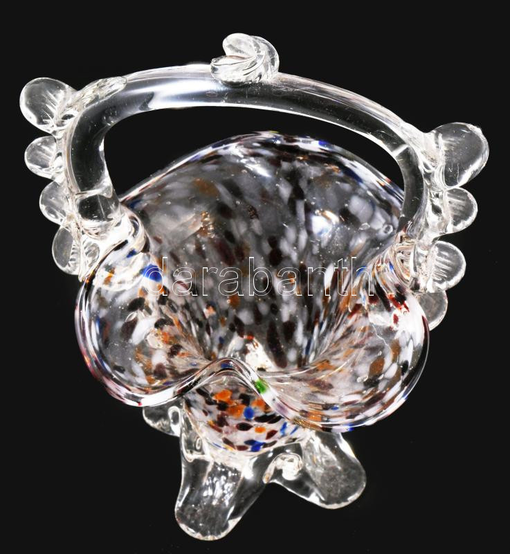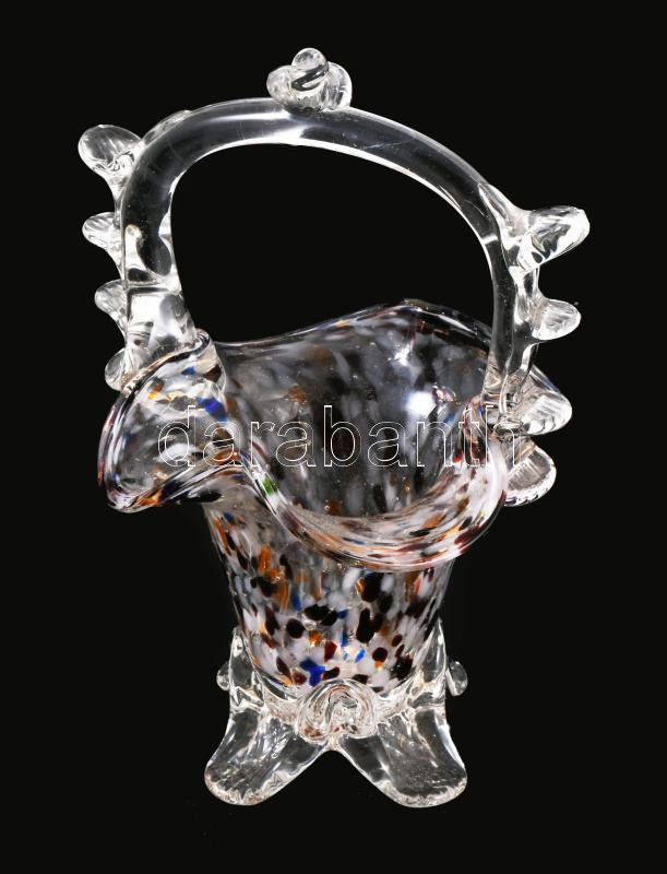 Anyagában színezett szakított üveg kosár asztaldísz, m: 17 cm
