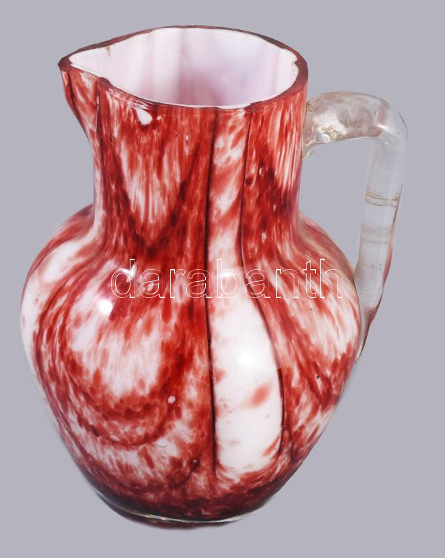 Art deco színezett tejüveg kis kancsó, minimális pattogzással, m: 9,5 cm