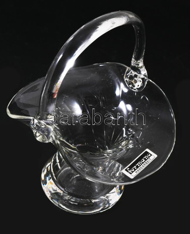 Formano hutaüveg iparművész kosár asztaldísz, jelzett, hibátlan, m: 18,5 cm