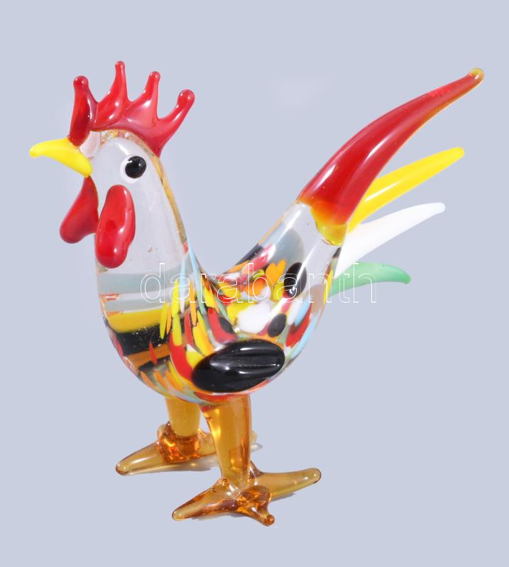 Iparművész üveg kakas figura, hibátlan, m: 7 cm