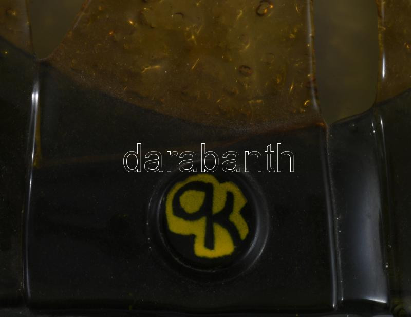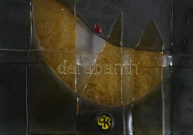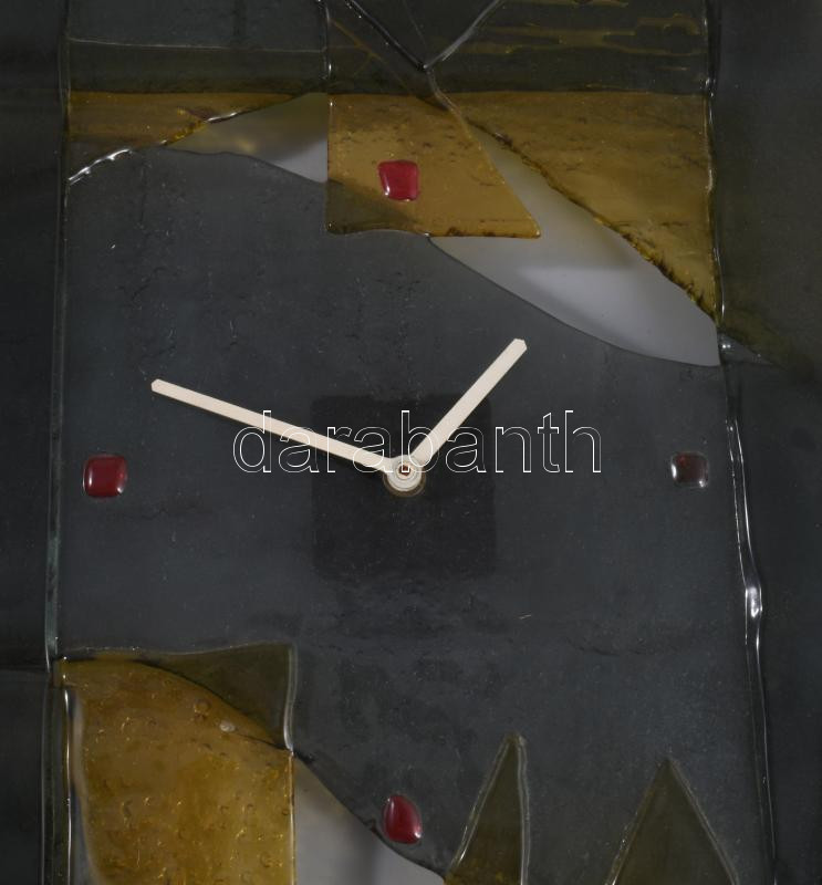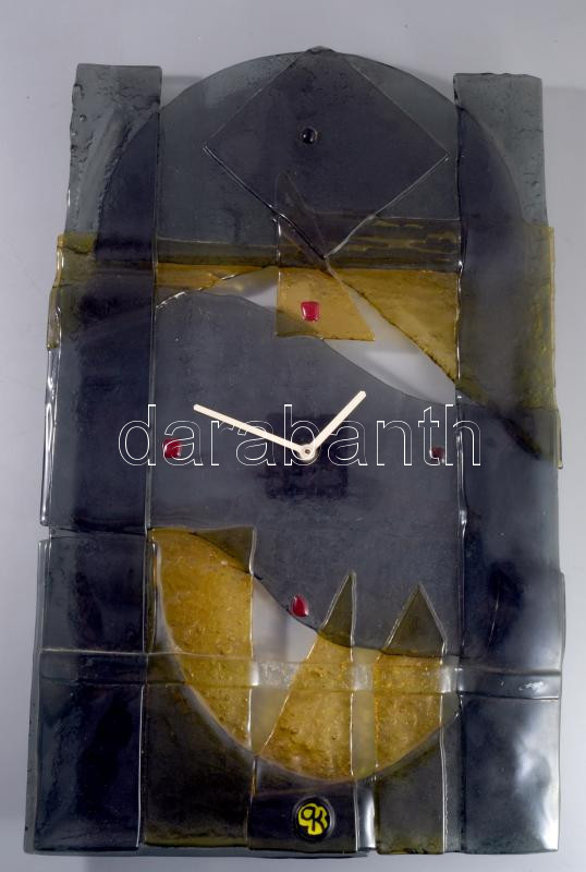 Kalmár Pál: Falióra. Anyagában színezett üvegblokkokból épített iparművész falióra, jelzett, hibátlan, 56x35 cm /// KIZÁRÓLAG SZEMÉLYES ÁTVÉTEL, NEM POSTÁZZUK! / ONLY PERSONAL COLLECTION AT OUR OFFICE!