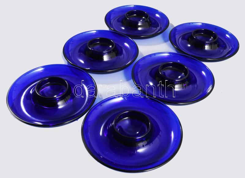 Királykék 6 darabos lágytojáskínáló garnitúra, anyagában színezett, hibátlan, d: 13 cm