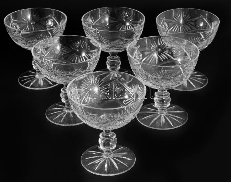 Kristály likőrös pezsgős pohár szett, 6 darab, hibátlan, m: 10,5 cm