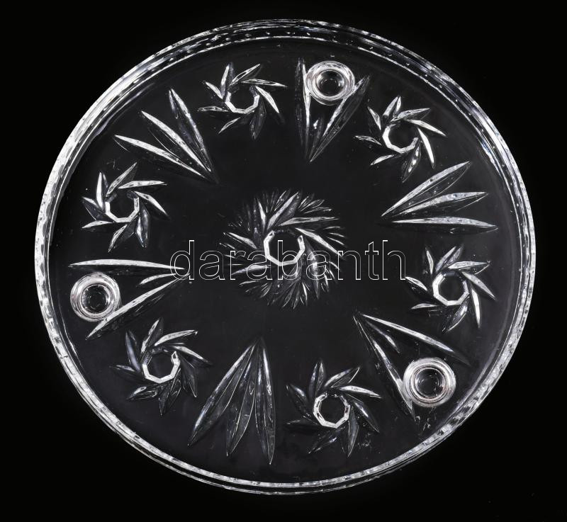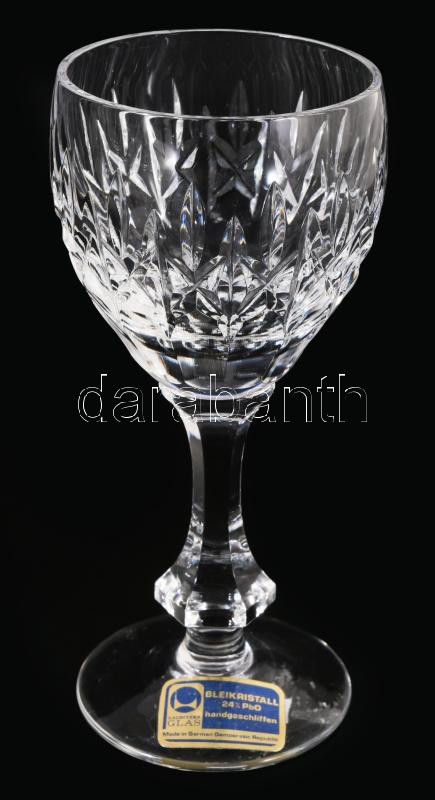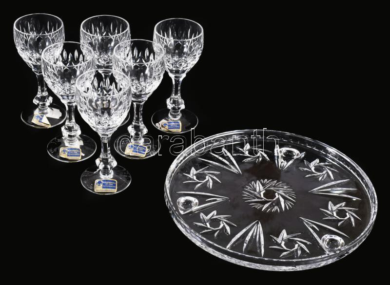 Lausitzer Glass ólomkristály italos pohár szett tálcán, jelzett a poharakon, hibátlan, d: 22 cm, m: 12,5 cm
