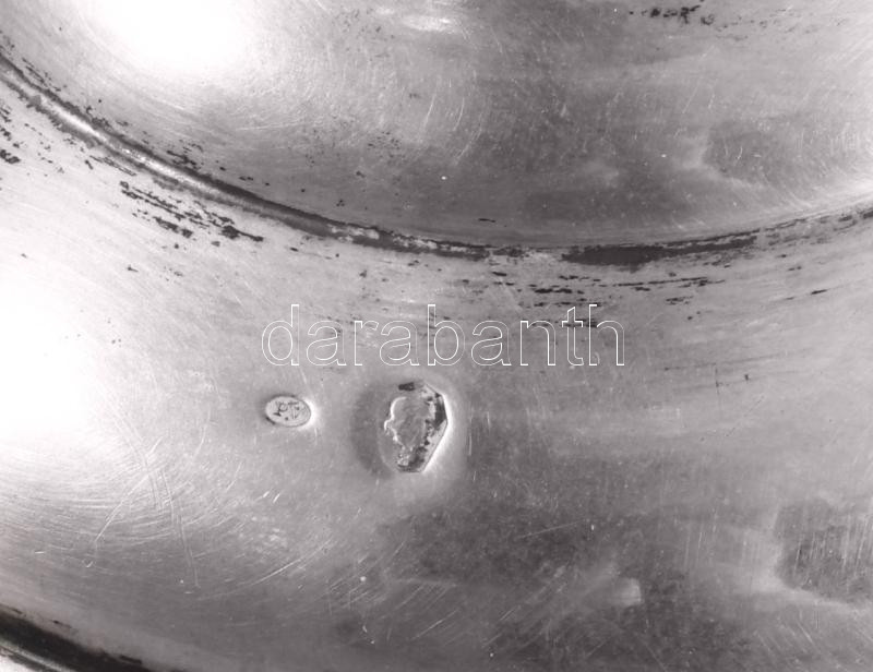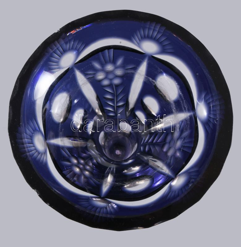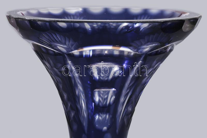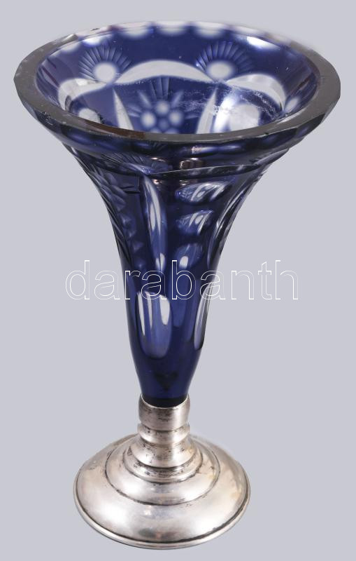Lilán pácolt kristály kehelyváza ezüst (Ag) talpban, jelzett, 1937-1966 közötti magyar fémjel, 800 ezrelékes ezüst, mesterjegy, m: 20 cm