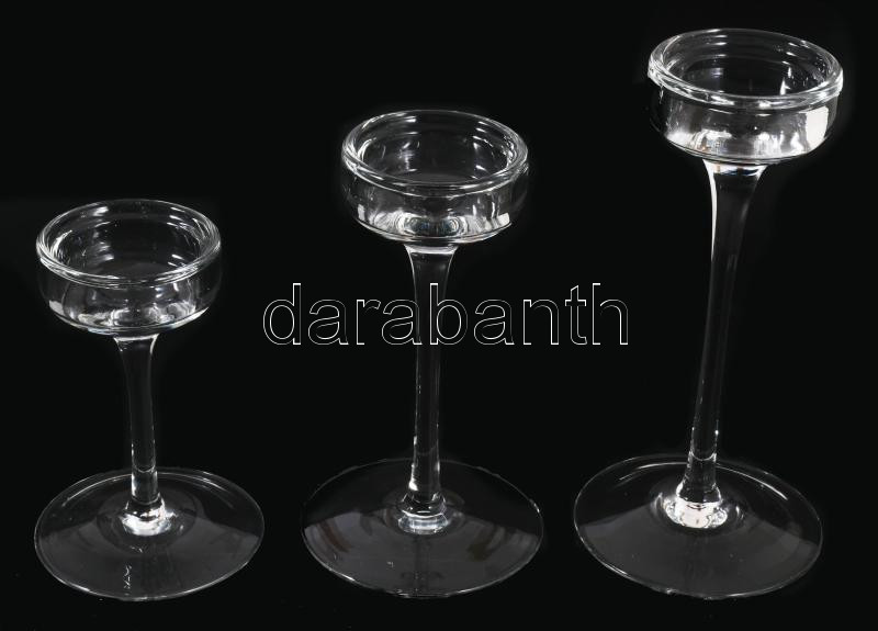 Skandináv három részes desginer üveg gyertyatartó szett, jelzés nélkül, hibátlan, m: 16-24 cm