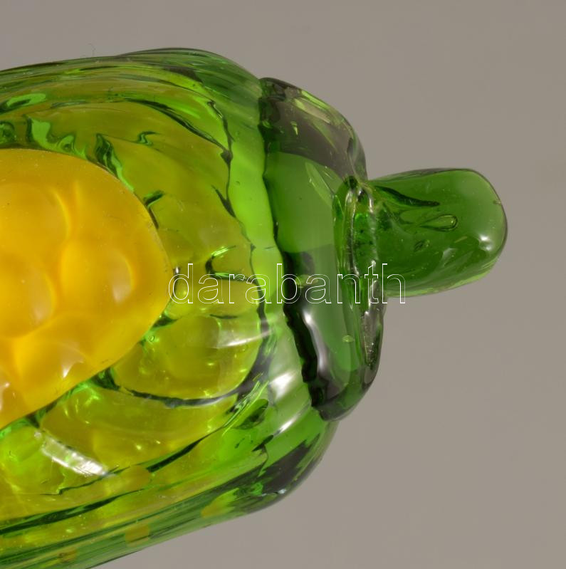 Színezett üveg kukorica asztaldísz, hibátlan, h: 15 cm