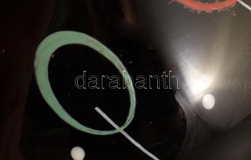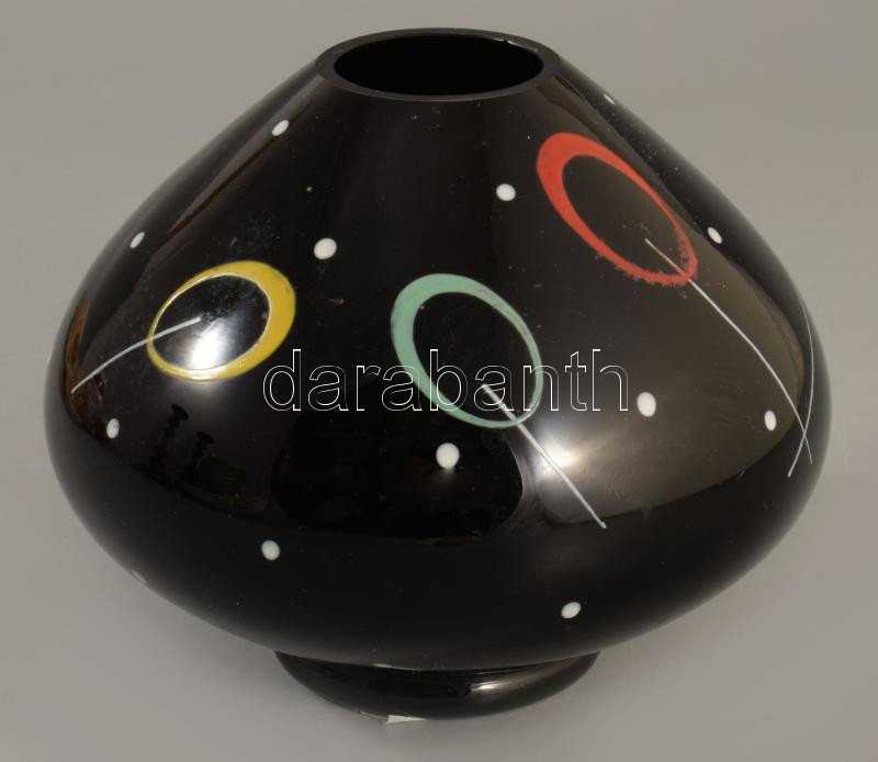 Zománcfestett hialitüveg váza, 13x11 cm