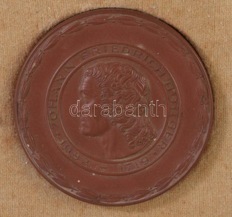 Meissen kerámia plakett Johann Friedrich Böttger arcképével, jelzett, tokban, d: 6,5 cm