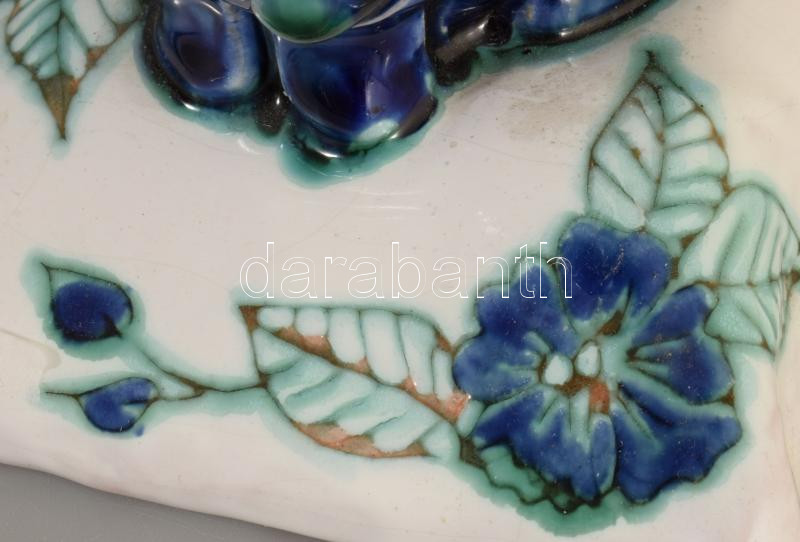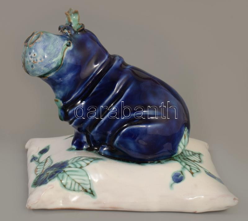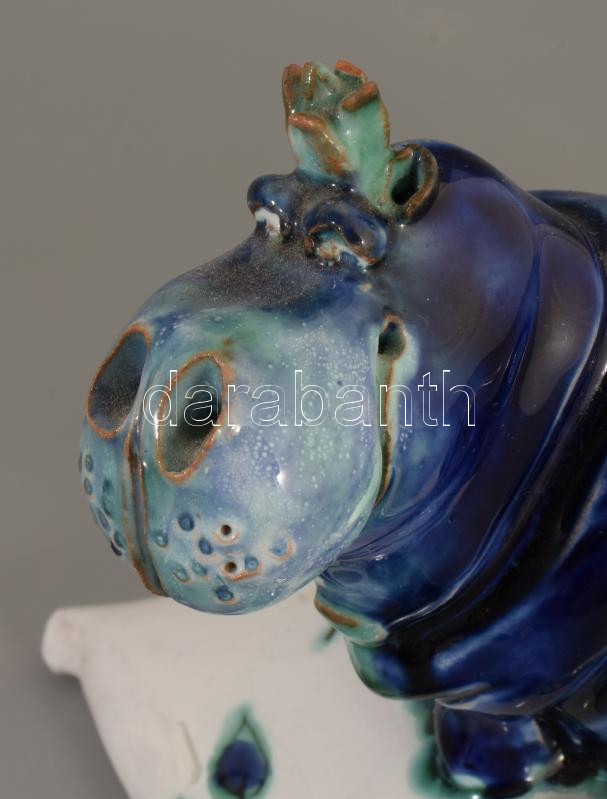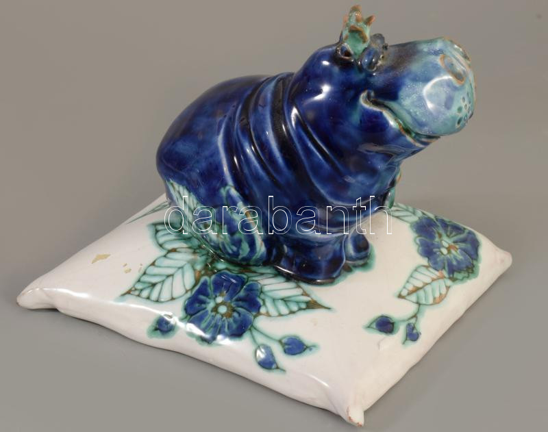 Morvay Zsuzsa (1946-): Víziló alakos asztaldísz, mázas kerámia jelzett, kis pattogzással,14x13 cm