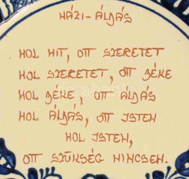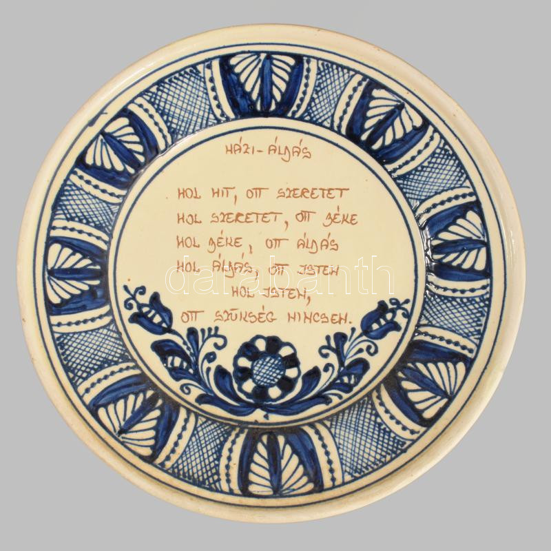 Népi kerámia házi áldás falidísz, d: 21,5 cm