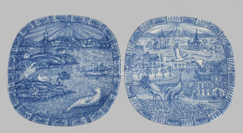 1978-1979 Rörstrand 2 darab dísztál, jelzett, hibátlan, 19,5x19,5 cm