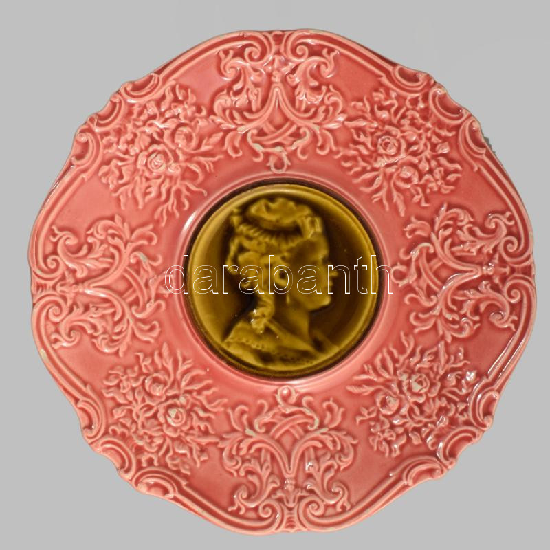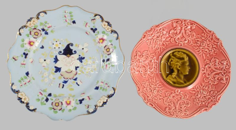2 darab antik dísztányér, cca 1900, egyik javított, d: 23 cm