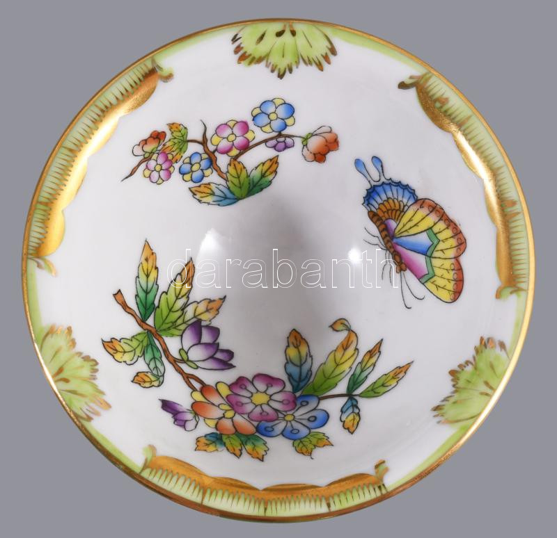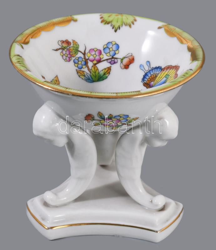 Herendi Viktória mintás fűszerkínáló, figurális lábakon, jelzett, hibátlan, d: 9 cm, m: 9 cm