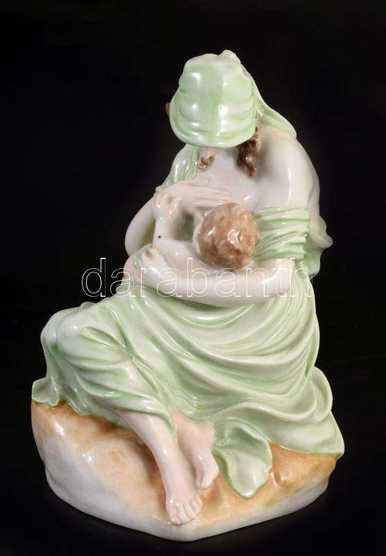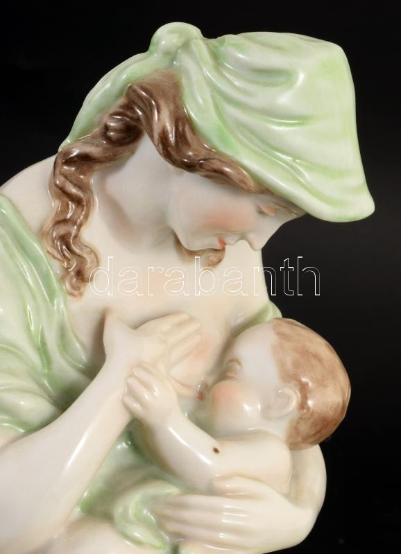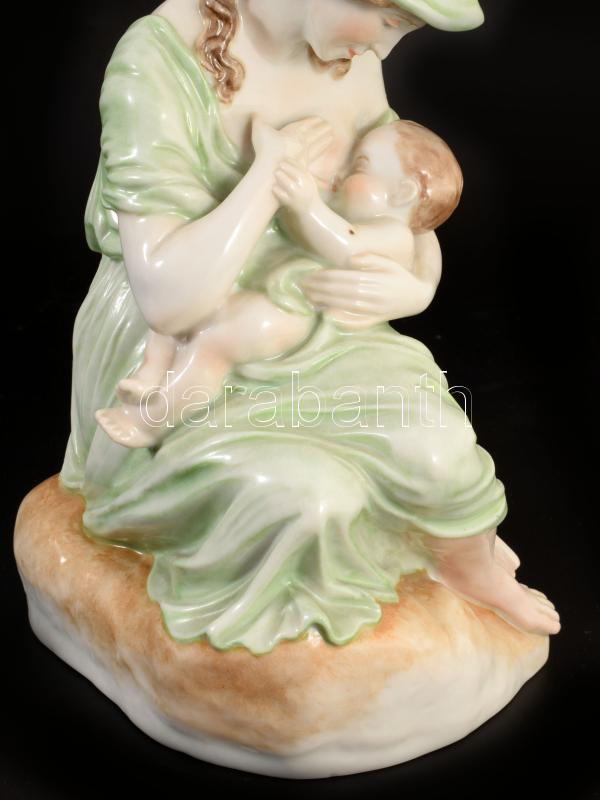 Herendi gyermekét szoptató anya. Jelzett, kézzel festett, hibátlan, m: 18,5 cm