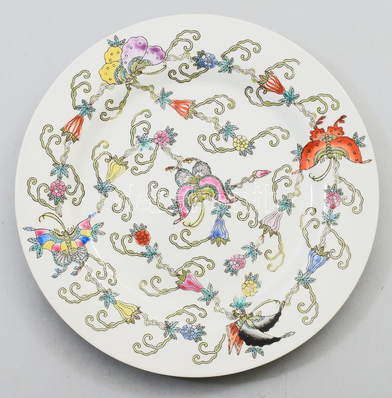 Inda- és pillangómintás kézzel festett kínai dísztál. Kína, XX. sz., j... https://www.darabanth.com/de/518-Auktion-Philatelie-Postkarten-Numismatik-Kunstwerke-Bucher-Schreibwaren-Schmuck/524.0/Porzellan-Keramik-Glass/Porzellan~83/Inda-es-pillangomintas-kezzel-festett-kinai-disztal-Kina-XX-sz-jelzett-hibatlan-d-26-5-cm~II3516626