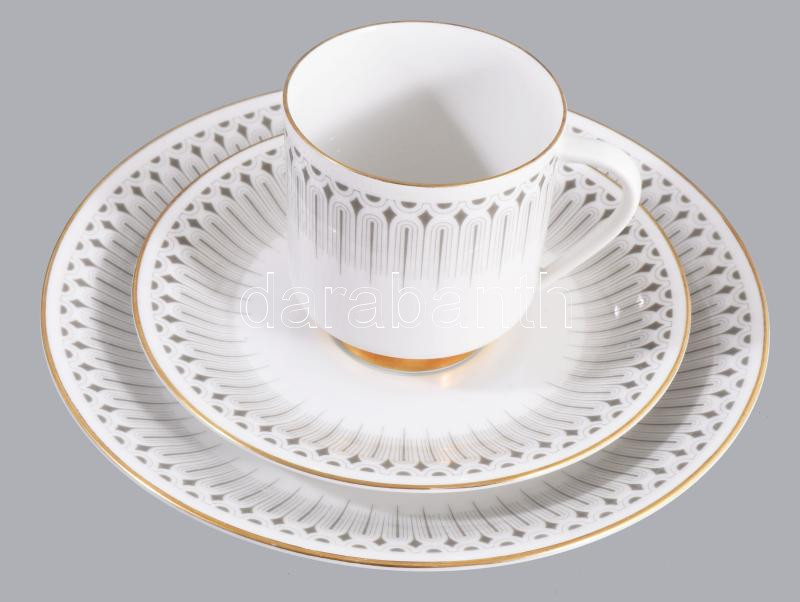Vohenstrauss mid-century egyszemélyes reggeliző készlet, csésze alátéttel és desszertes tányér. Jelzett, hibátlan, d: 19,5 cm