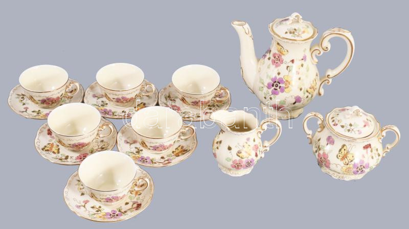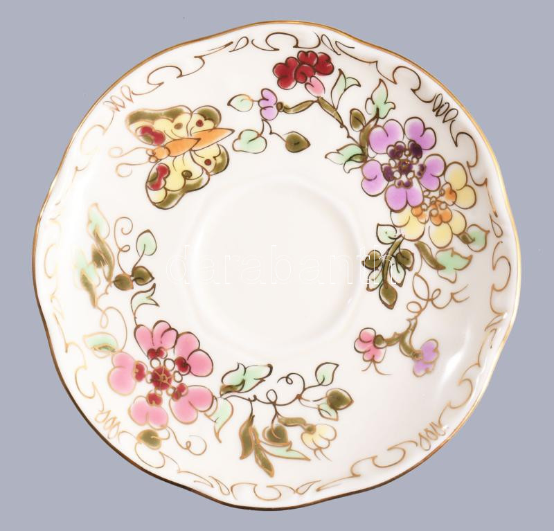 Zsolnay pillangó mintás mokkás készlet. Hat személyes. Kézzel festett, jelzett, hibátlan