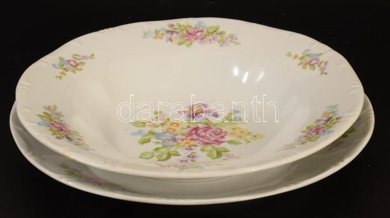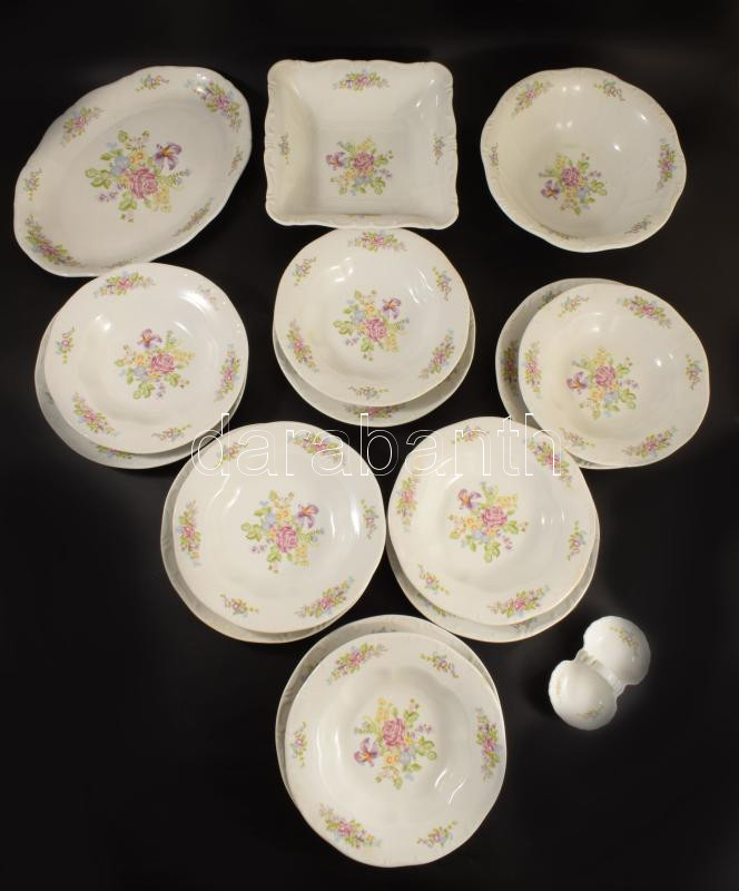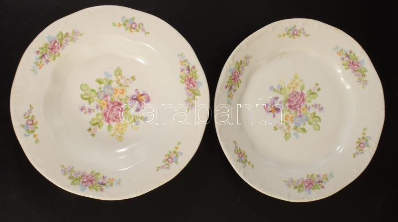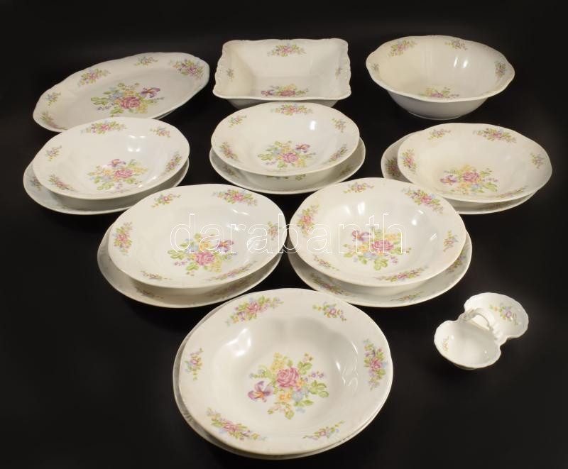 Zsolnay tollazott szélű virágmintás porcelán étkészlet, 16 darabos, jelzett, matricás.
