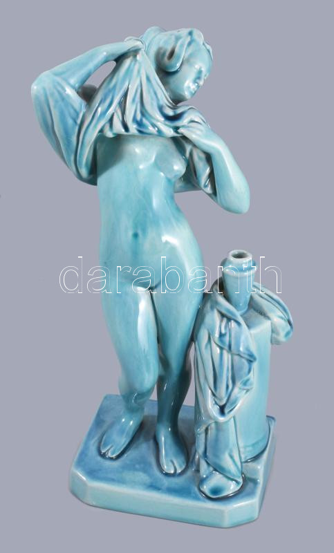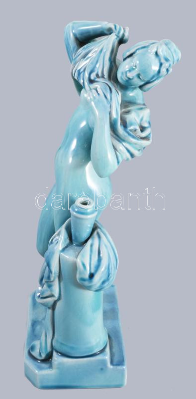 Zsolnay vetkőző akt. Alapmázas. Jelzés nélkül, kis felületi hibával, m: 26 cm