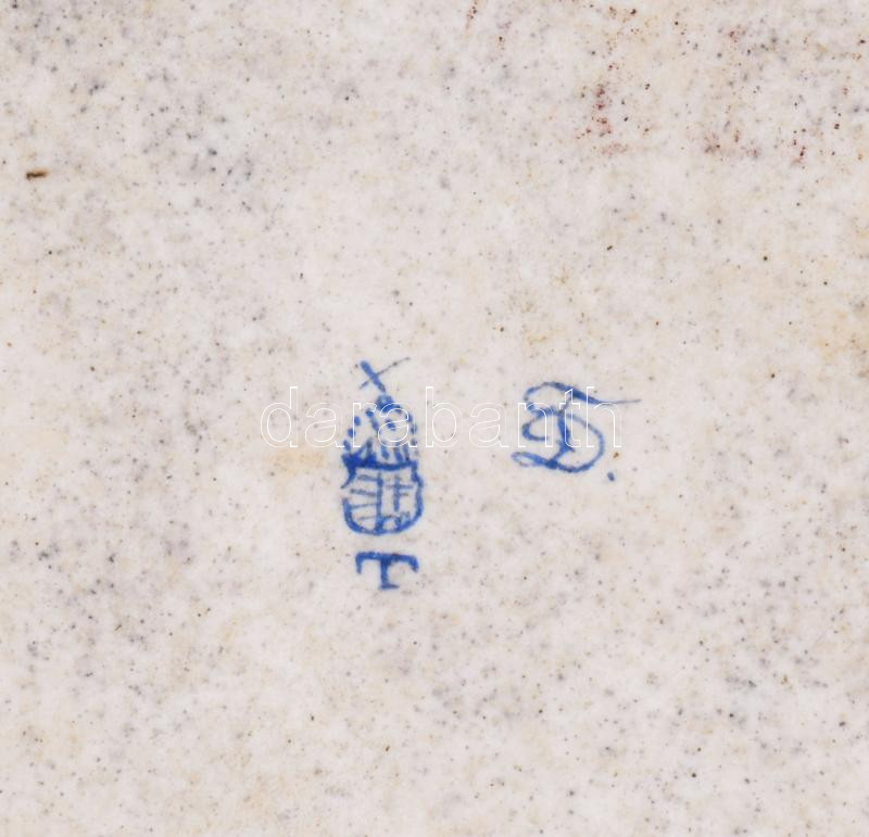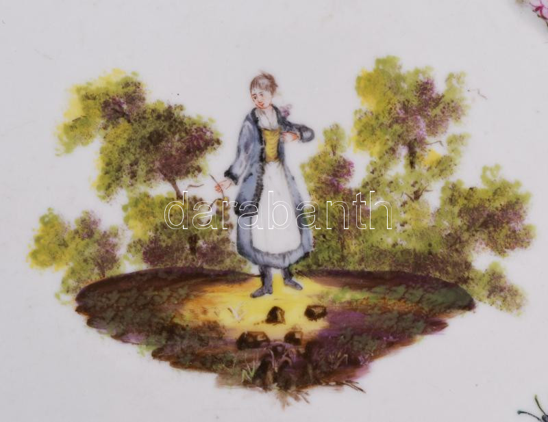 cca 1840-1870 Herendi zsánermintás kínáló, pikkelyes peremdíszítéssel, jelzett, kopással, 25x26 cm