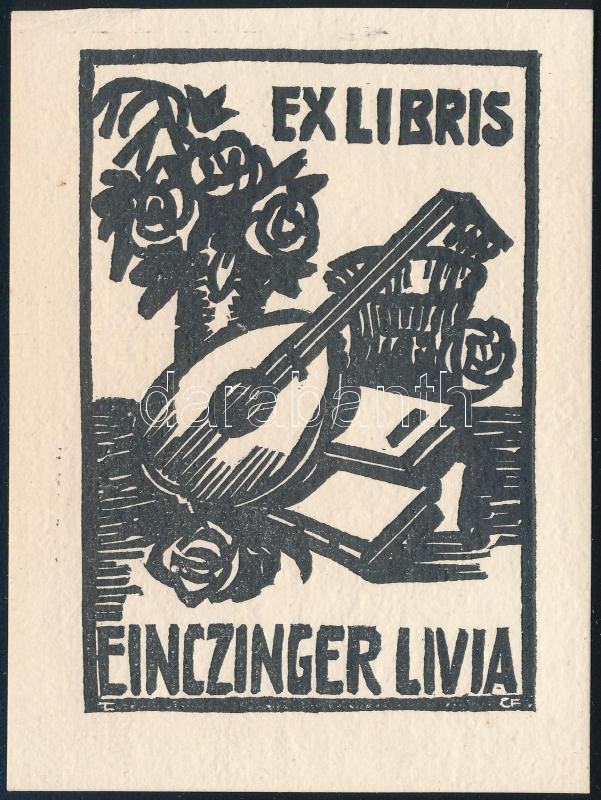 Einczinger Ferenc (1879-1950): Ex libris Einczinger Livia. Linómetszet, papír. Jelzett a metszeten. 8x5,5 cm